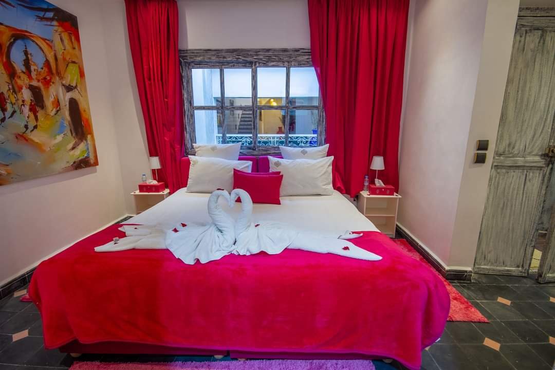 La Chambre Condor vous invite à découvrir un espace raffiné où le blanc et le rose s'harmonisent pour sublimer l'artisanat marocain. Son design élégant associe la pureté du blanc à la douceur du rose, créant une ambiance à la fois apaisante et chaleureuse. Vous y trouverez deux lits individuels confortables ainsi qu'un coin détente soigneusement aménagé, offrant un véritable havre de sérénité. Pour votre confort, la chambre est équipée de la climatisation, du chauffage, du Wi-Fi et d'une salle de bain moderne entièrement équipée avec des serviettes moelleuses, un sèche-cheveux, un peignoir douillet et des articles de toilette haut de gamme.